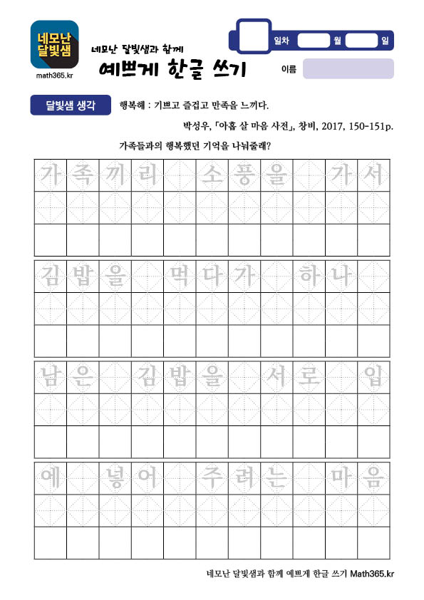 | 예쁘게 한글 쓰기 + 즐겁게 3줄 글쓰기 #4 | 초등학교 2학년 학습지 (0) | 2025.04.03 |